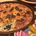 Przekładamy do płytkiego szklanego naczynia, posypujemy resztą serów i mieszanki boczku i jalapeño, wkładamy do piekarnika i pieczemy przez ok. 15-20 min. Na koniec pieczenia możemy zwiększyć temperaturę piekarnika zmienić funkcję na pieczenie tylko od góry, by w razie potrzeby bardziej zrumienić powierzchnię dania.