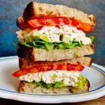 Ta sałatka to kolejny popularny amerykański klasyk, serwowany w porze lunch’u w formie kanapki lub jako platter – na łożu sałaty, z przeróżnymi warzywami. Dla mnie jest to propozycja trochę siermiężna, dlatego też do tej pory broniłam się przed nią rękami i nogami. Bo smakowym wyrafinowaniem nie powala; ot, zwykła pierś (jak dla mnie już nudna sama w sobie) wymieszana z majonezem. Ale blog zobowiązuje, kwarantanna też, więc w pogoni za czymś szybkim, może mało ambitnym, za to ujmująco bezproblemowym, sięgnęłam po tę właśnie sałatkę.