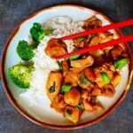 Kurczak pysznie smakuje z ryżem lub jakimkolwiek makaronem azjatyckim.