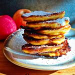 Dzisiejsze placki są kolejną odą do jabłka. Odą błyskawiczną, a jakże smaczną! Chodziły mi bowiem po głowie racuchy, ale Dzieciny nalegały na tradycyjne amerykańskie pankejksy. Pobuszowałam trochę po internecie i stwierdziłam, że wystarczy już jabłek w kawałkach i kawałeczkach. Czas na tarkę i tarcie. Tym bardziej, że Panowie chcieli kwintesencję placka, bez zbędnego chrupania kolejnej porcji witamin, które im niezmordowanie wciskam. Połączyłam przyjemne z przyjemnym – po starciu jabłek nic, ale to nic nie stoi na drodze czystego pankejka, bo jabłko jest, ale tak, jakby go nie było;-) Jest za to czysta esencja jabłka, jego serce i dusza, podkreślona kardamonem, goździkami i cynamonem.