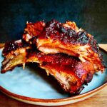 Żeberka umieszczamy na rozwiniętej folii mięsem do góry. Polewamy zredukowanym sosem BBQ i wkładamy ponownie do piekarnika. Przypiekamy przez 5-10 minut, pilnując, by sos się pięknie skarmelizował, ale nie spalił.