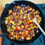 Ameryki nie odkrywam, gdzieżbym śmiała, ale umieszczam ten przepis, bo bardzo odpowiada przewodzącej tematyce mojego bloga – podsmażane ziemniaki są w USA bardzo popularnym dodatkiem do śniadaniowych dań jajecznych i nie tylko. Każdy szanujacy się diner ma je w menu, z mięsem lub bez. Zazwyczaj są podsmażone z cebulą i papryką, na głębszym albo płytszym tłuszczu. Można je posypać ulubionymi przyprawami i ziołami, co niniejszym czynię.